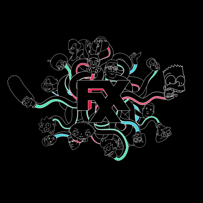 Armed with the biggest titles in the game, FXX was ready to take over the adult animation world. To get word out, they tapped us to create several parody identities for their various iconic shows. With these concepts working in weird harmony, our mixed and mashed brand identity solidifies FXX as the unrivaled goliath of animation.